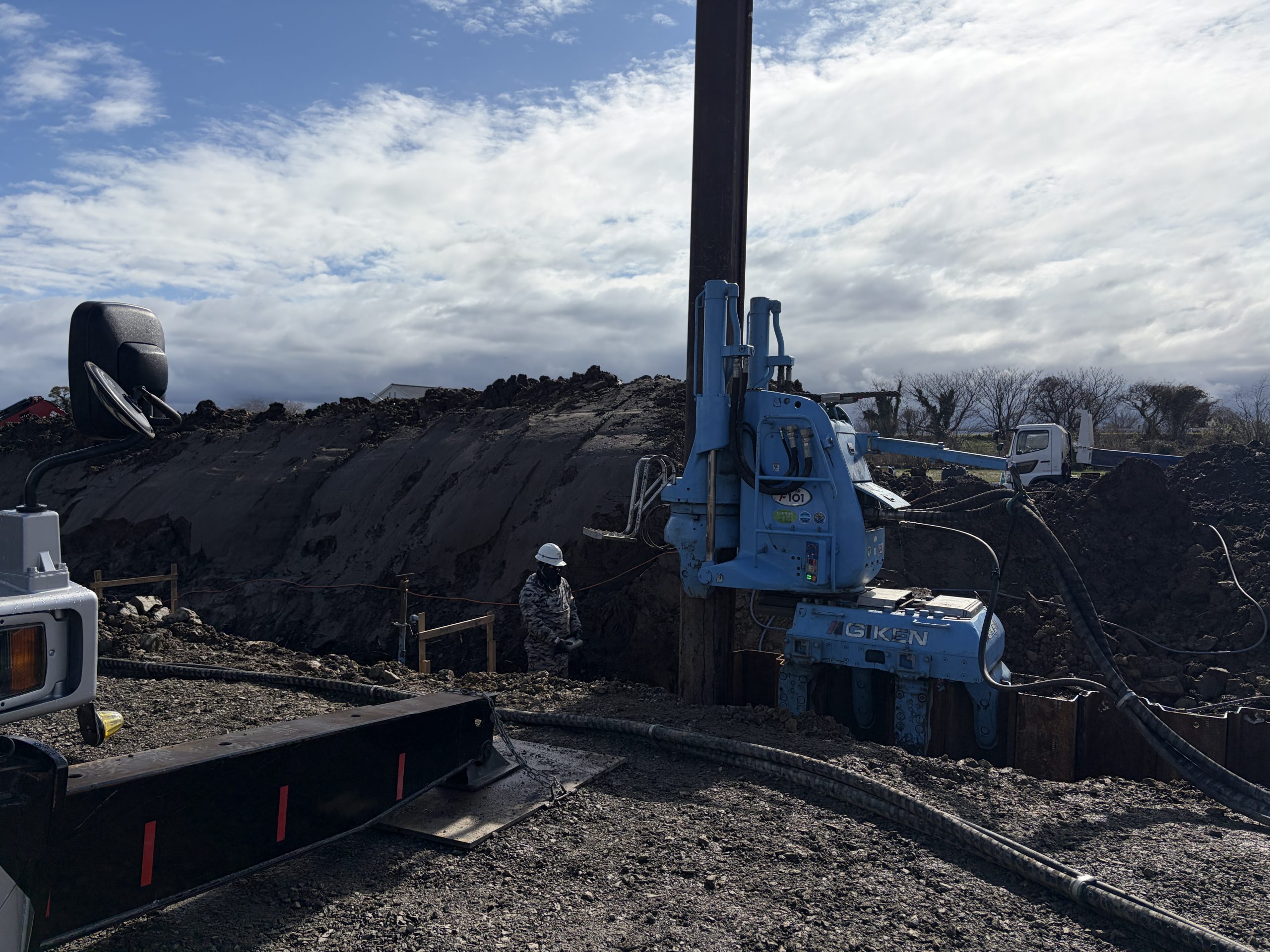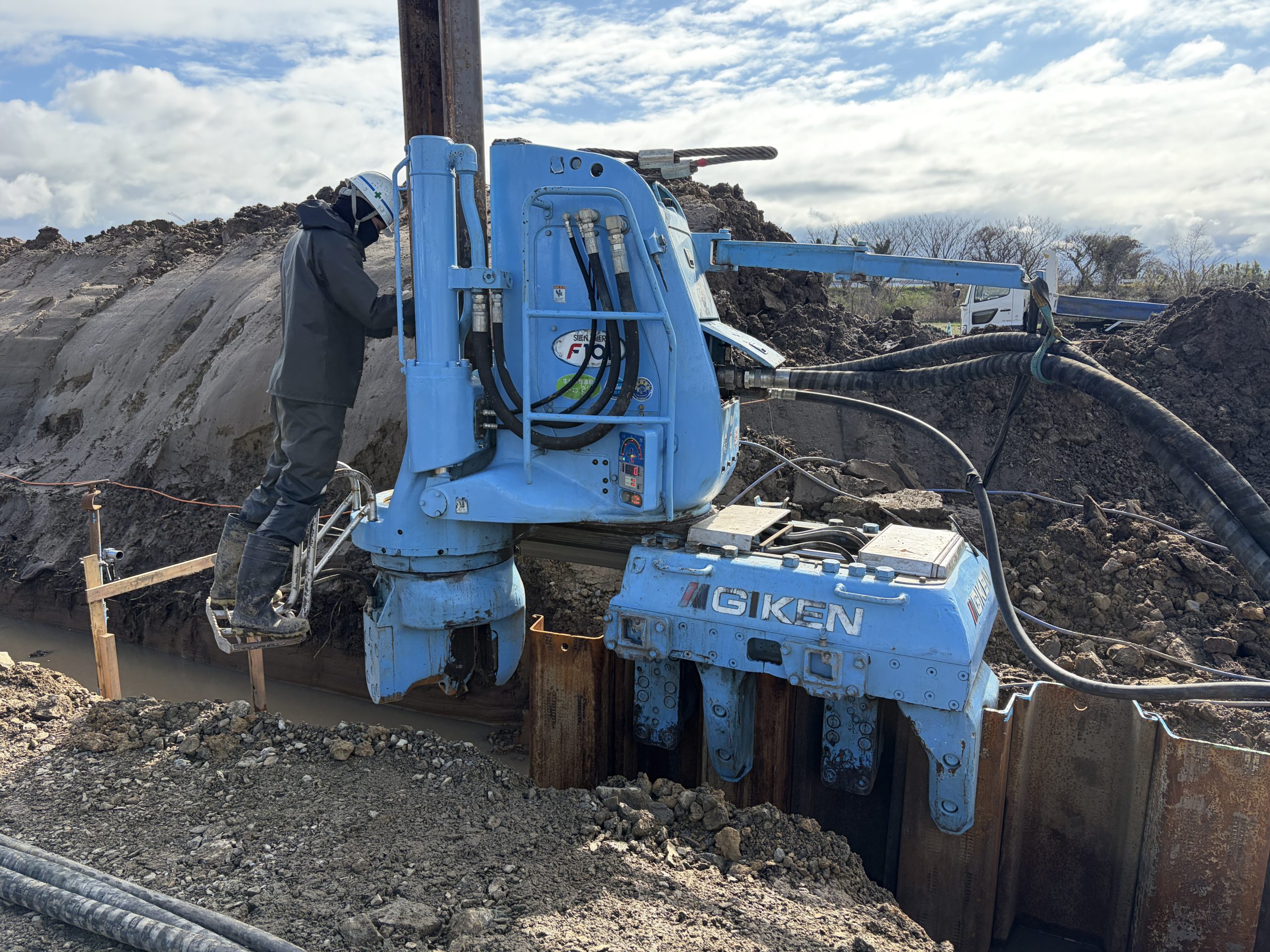 👉 矢板(鉄の板)を「押し込む」ことで地面に打ち込みます。