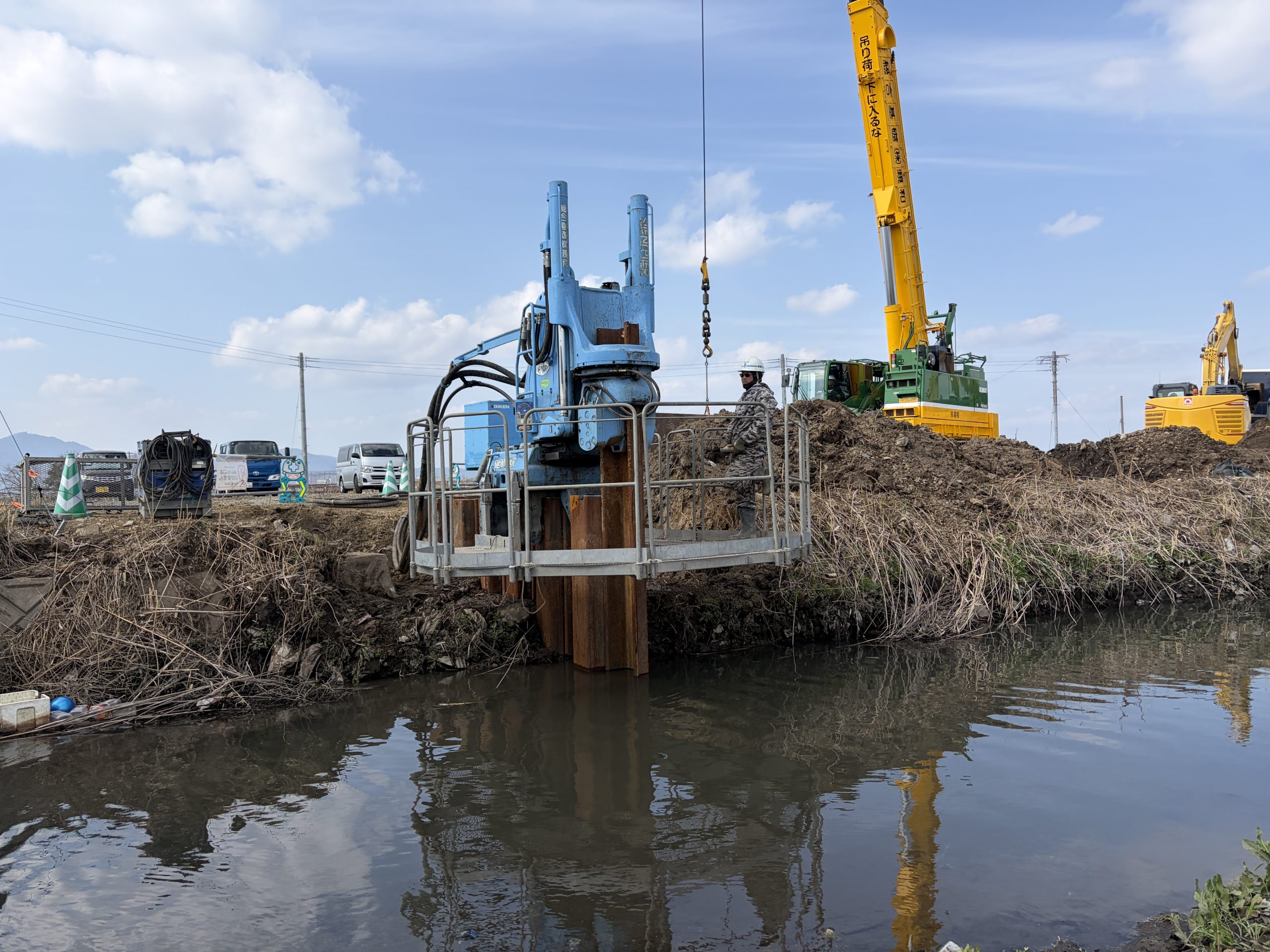 施工箇所が地盤より低く、川の水が流れ込んでしまうため、