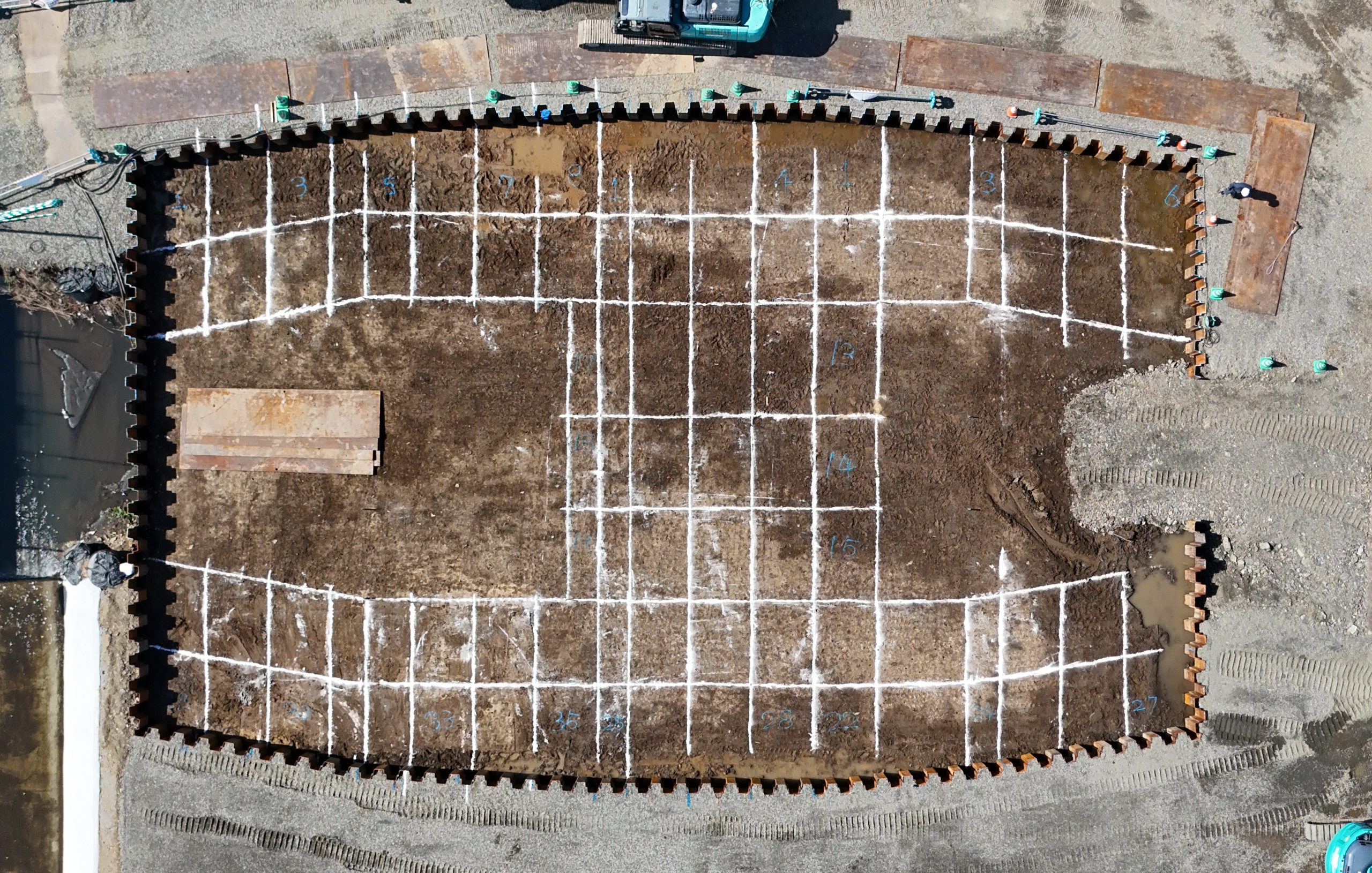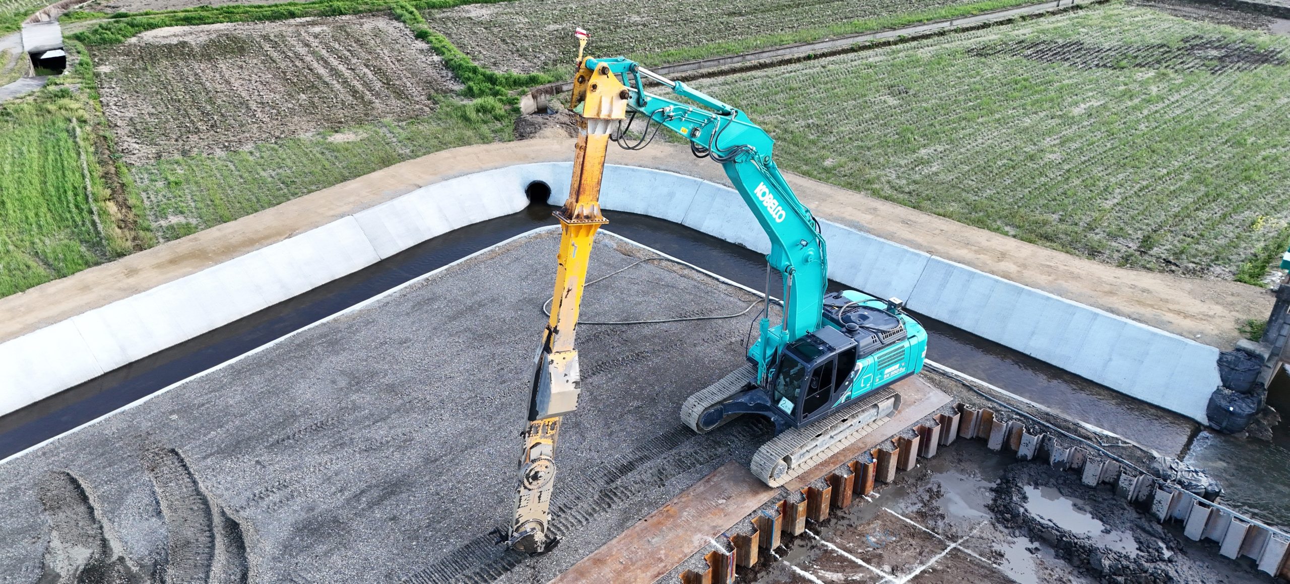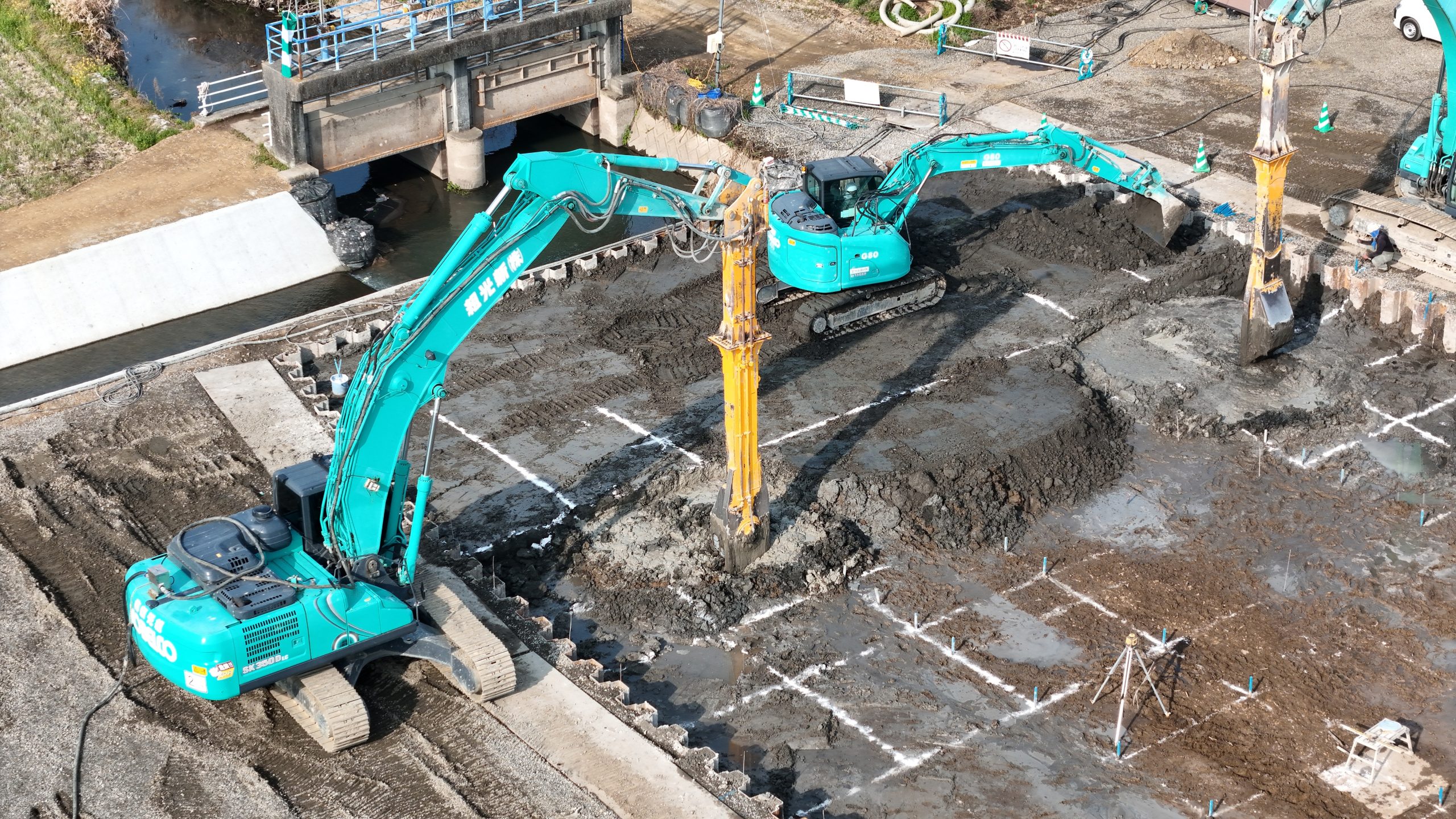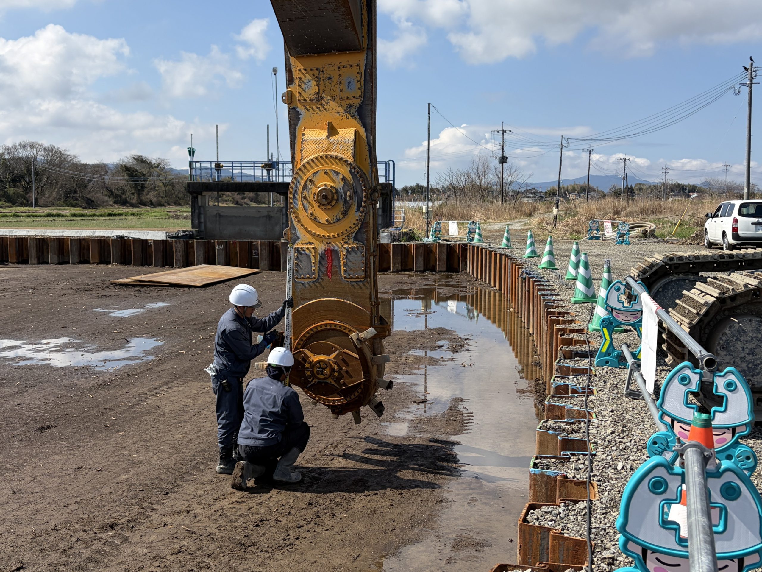 今回の工事では、河川内に構造物を築造するため、その基礎を確実に支える目的で、事前に地盤改良工事を行います✨
